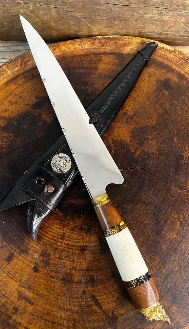 Faca Artesanal Javalizeira inox 12 polegadas , excelente fio de corte, cabo misto, dorso mosqueado. Ideal para churrasco, cozinha ou presente especial. Produtos do Gaúcho — tradição e qualidade em cutelaria.