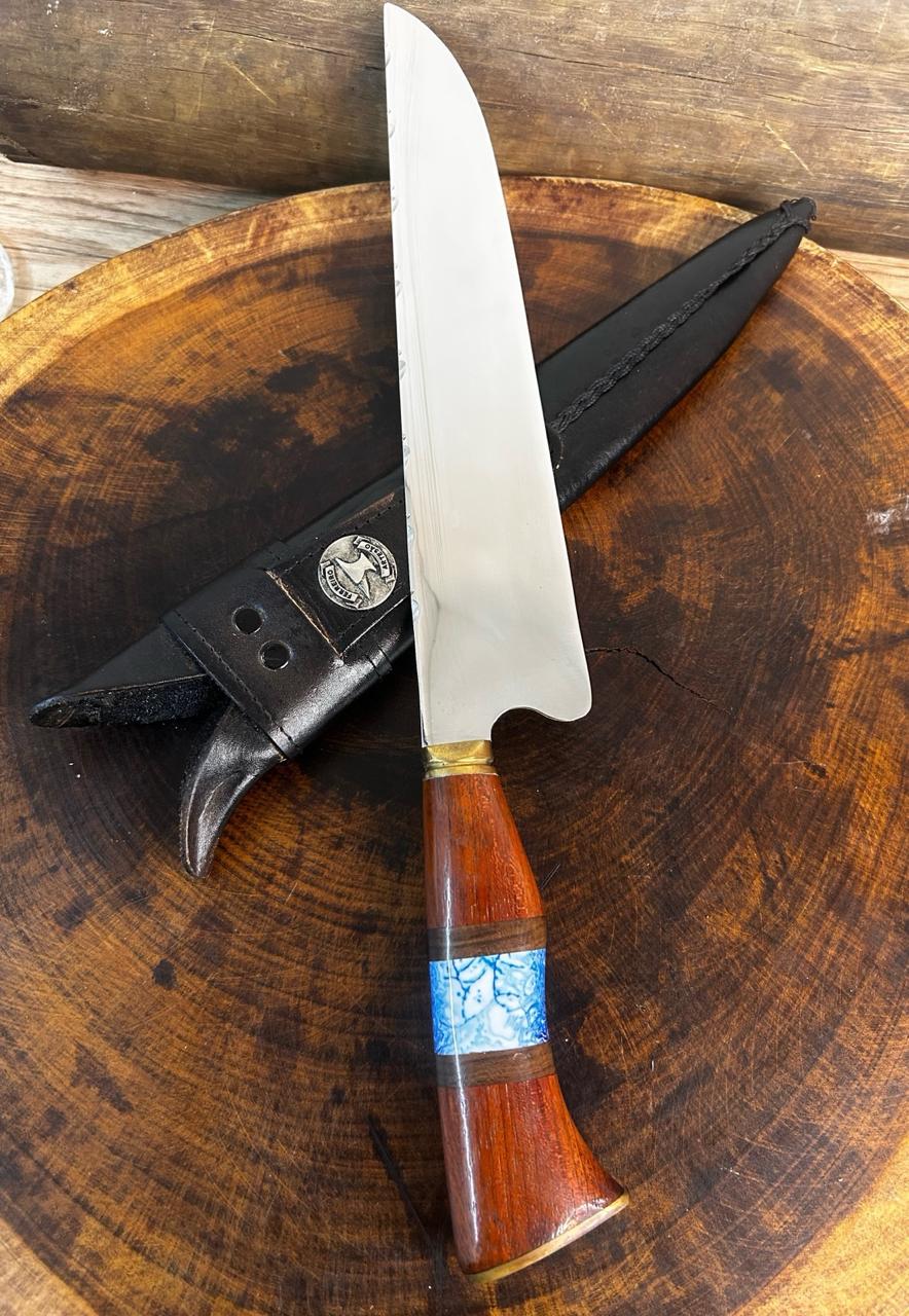 Faca picanheira Ferreiro Artesão 10 polegadas, excelente fio de corte cabo misto dorso mosqueado, ideal para churrasco e corte de carnes.